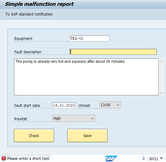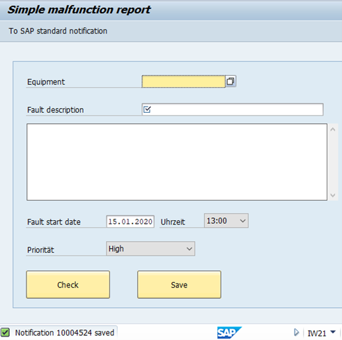 Pushbutton (toolbar) “Simple malfunction report” process=“iw21_simple_on.txt”
